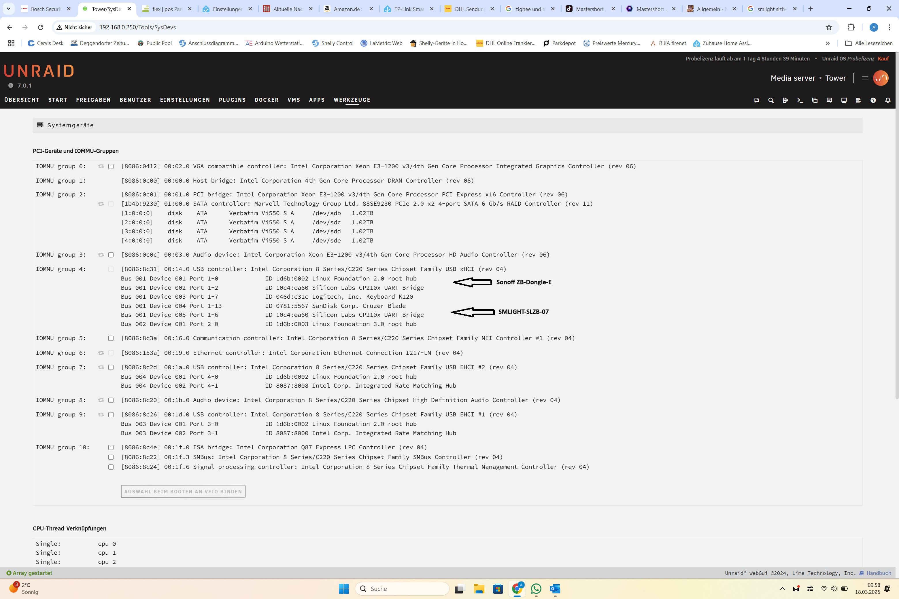 Schau mal dort ob VT-d aktiviert ist. Ich gehe zwar davon aus, da die Groups angezeigt werden, aber nachschauen kostet ja nix.