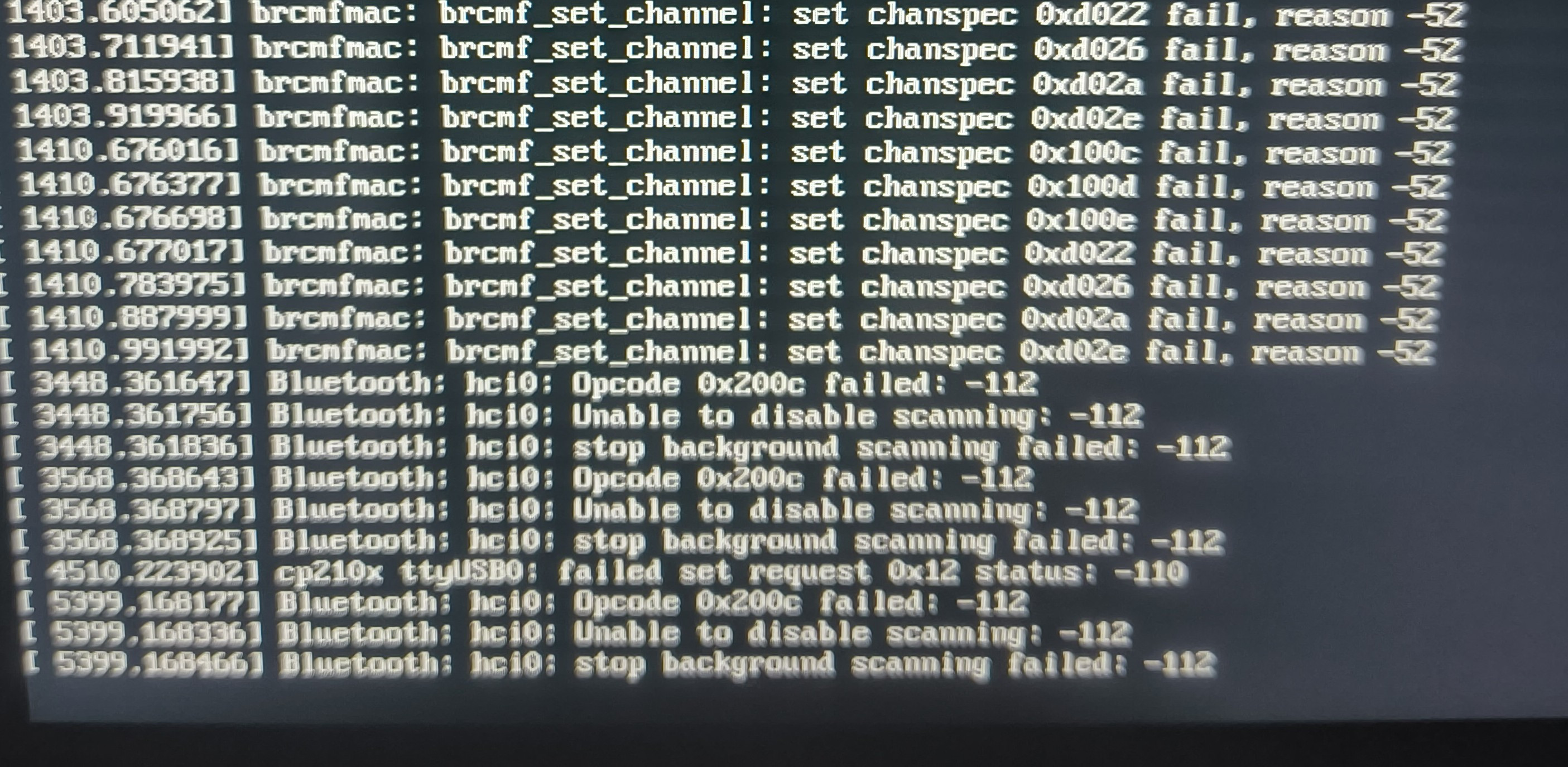 1x brcmfmac brcmf_set_channel: set chanspec fail, reason -52